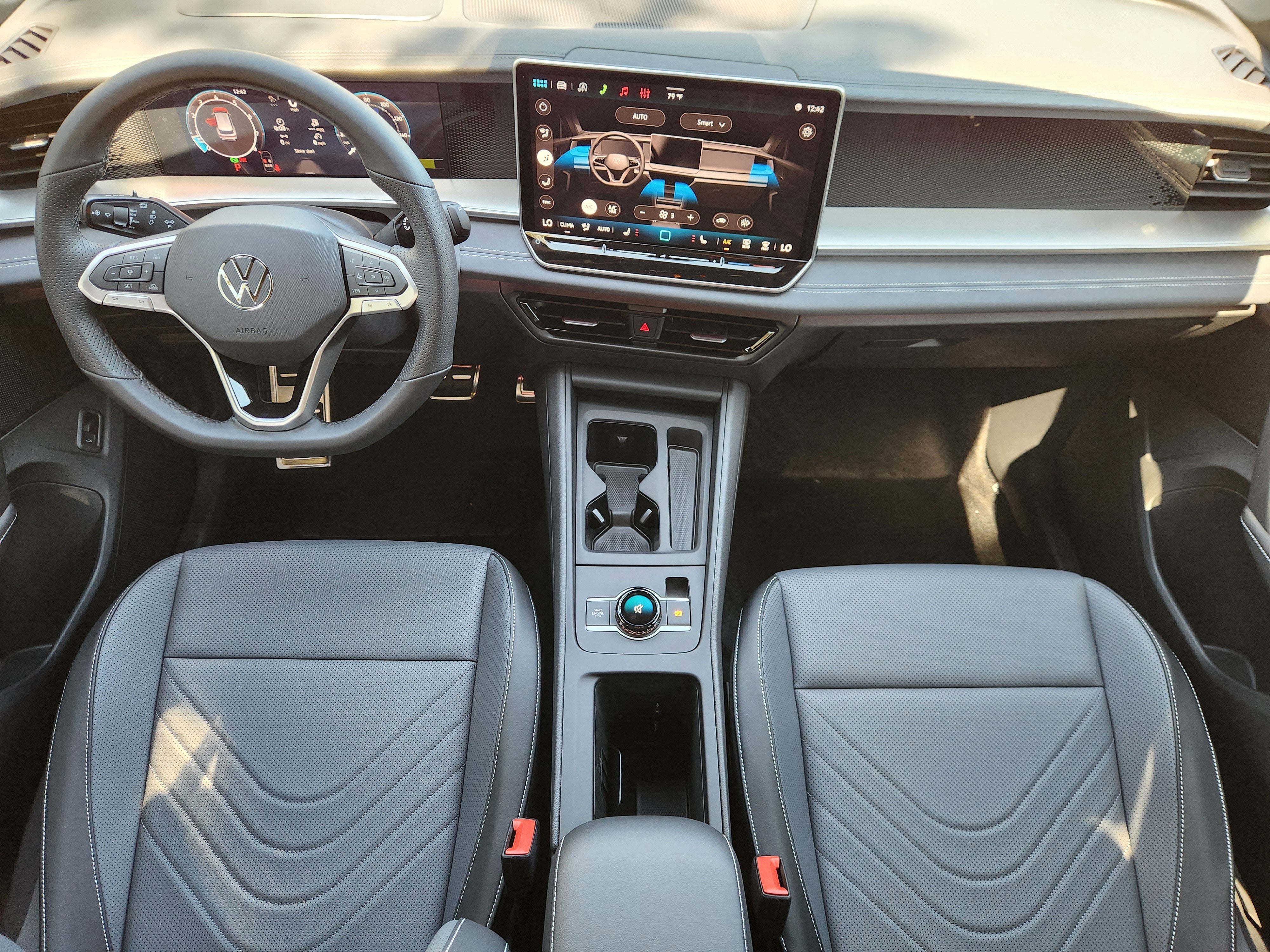 - MIB4 Composition Media Touchscreen w/AM/FM Radio -inc: WMA/MP3/FLAC player w/USB, 12.9" touchscreen multi-function center display w/backlit sliders, voice control, 6 speakers + center speaker (7 speakers total) sound system, capability for in-vehicle 4G LTE enabled Wi-Fi (cellular data plan required; includes limited trial), capability for connected vehicle services (capabilities for services vary; requires enrollment or subscription), Bluetooth® connectivity (for compatible devices), SiriusXM w/360L (w/3-month free trial subscription; 360L services require acceptance of Car-Net terms), App-Connect smartphone integration (w/Apple CarPlay, Android Auto and MirrorLink) via USB, wireless App-Connect smartphone integration (for compatible devices) w/multi-phone pairing capability, 45W fast charging (for compatible mobile phones and accessories) via USB in both rows and Qi wireless inductive charger, cooled, up to 15W (for compatible mobile phones and accessories) All connected vehicle services are subject to terms and limitations. Some services require a paid subscription. See dealer or vw.com/connected for important details.