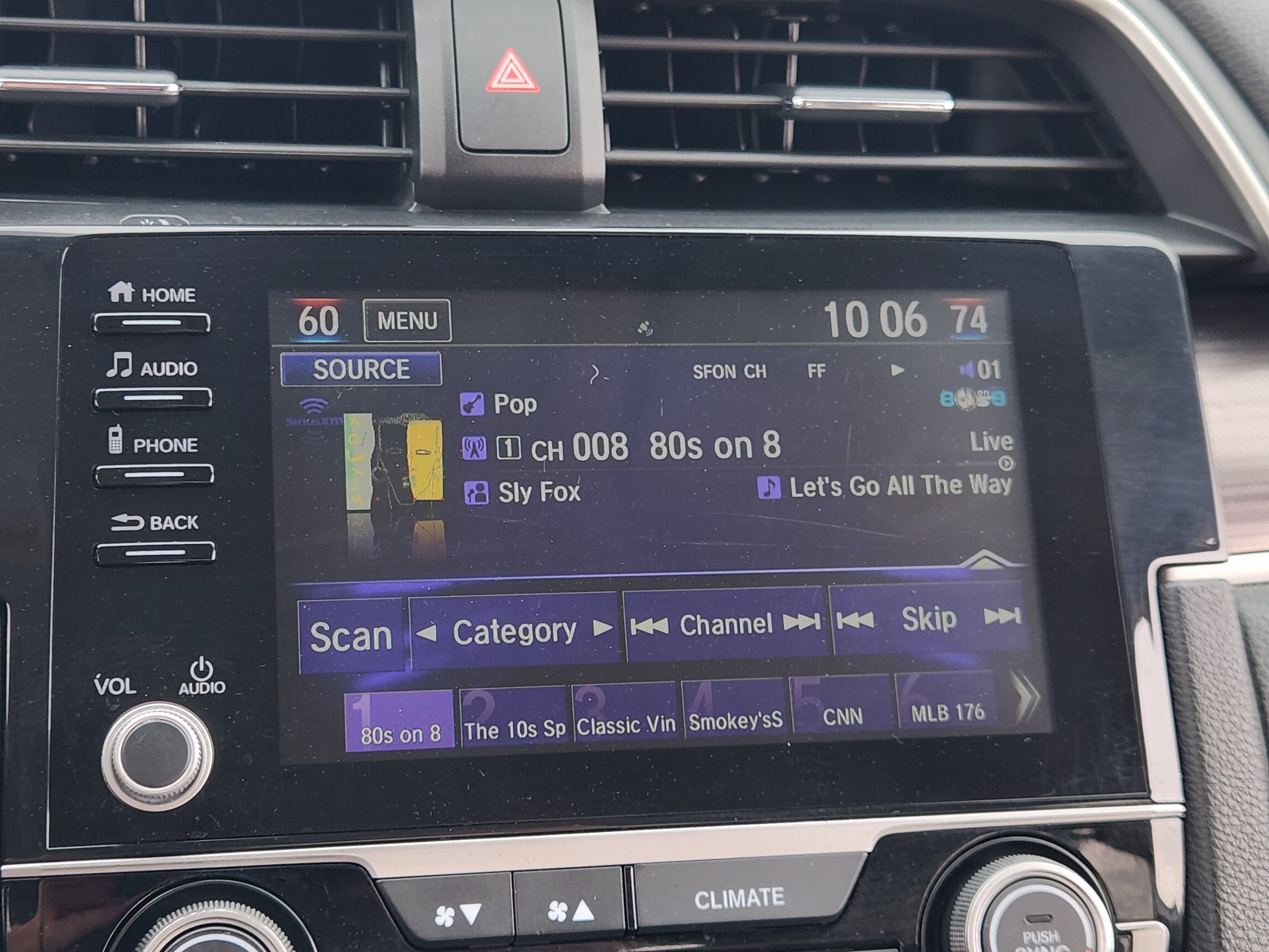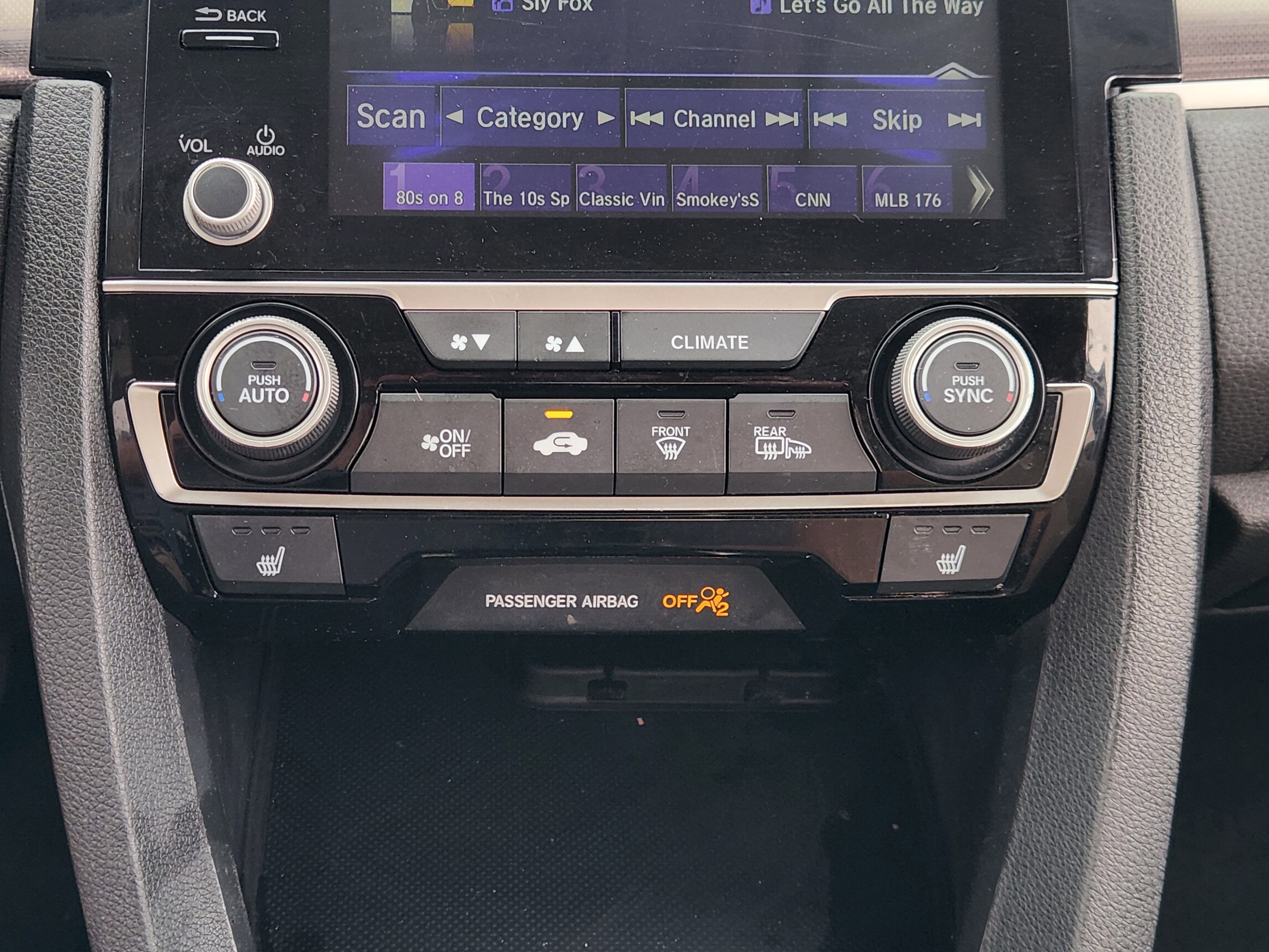 - Radio: 180-Watt AM/FM/HD/SiriusXM Audio System -inc: 8 speakers, 7-inch display w/high-resolution electrostatic touch-screen, knob and hard keys for primary controls and customizable feature settings, Bluetooth® HandsFreeLink, Bluetooth® streaming audio, radio data system (RDS), speed-sensitive volume compensation (SVC), 1.5-amp USB smartphone/audio interface in front, 1.0-amp USB audio interface port in center console, HondaLink, Apple CarPlay integration, Android Auto integration, SMS text message function, fin-type roof-mounted antenna and illuminated steering wheel-mounted controls