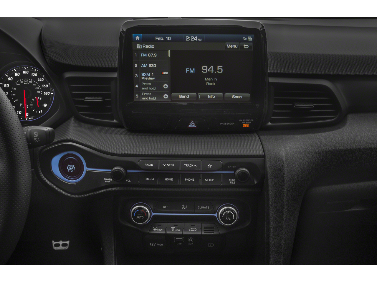 - Radio: AM/FM/SiriusXM 8" Display Audio -inc: Apple CarPlay, Android Auto, Infinity premium audio w/8 speakers including subwoofer and external amp, Blue Link (Gen 2) connected car system, dual charging USB ports, Smartphone/MP3 auxiliary input jacks, Bluetooth® hands-free phone system w/voice recognition, active sound design and speed-sensitive automatic volume control