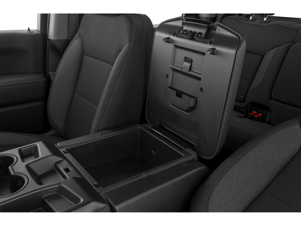 - Seat, Cloth Rear with Storage Package, 60/40 folding bench for Crew Cab models, includes seatback storage on left and right side, center fold out armrest with 2 cupholders, (includes child seat top tether anchor)